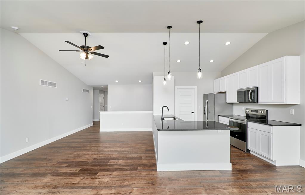 BRAND NEW home with every option you could imagine! They include vaulted ceilings, rounded “bullnose” corners, granite or quartz countertops, stainless steel appliances, 42" cabinets with "cushion close", custom neutral-colored paint job throughout, LVT flooring throughout most of the home, framed windows, taller baseboards, adult-sized cabinets in bathrooms with marble countertops, walk-in closets, upgraded carriage garage doors with openers on 2 CAR Garage, full bath rough-in, panel doors (many varieties), and upgraded water/light fixtures throughout the house! MAIN FLOOR laundry! Fully sodded yard (front/sides/back). *Pictures are of previously built homes. Builder/Broker* This home is USDA eligible.